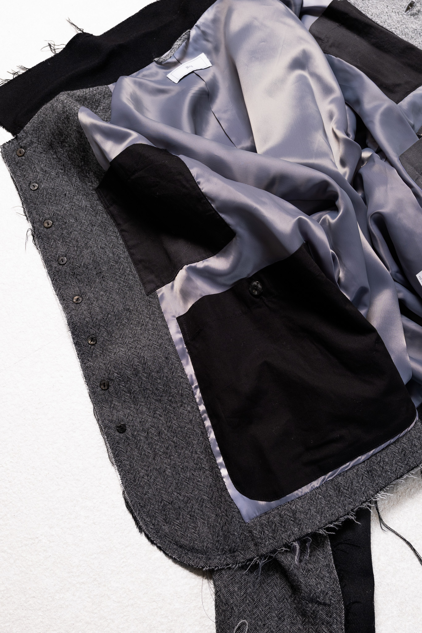 程よい起毛感としっかりと空気を留める素材感により、厚みは抑えつつも保温性のある仕上がりとなっております。GRAYのヘリンボンとBLACKのツイルによる切り替え仕様で、生地ごとの表情感の違いもお楽しみいただけます。
