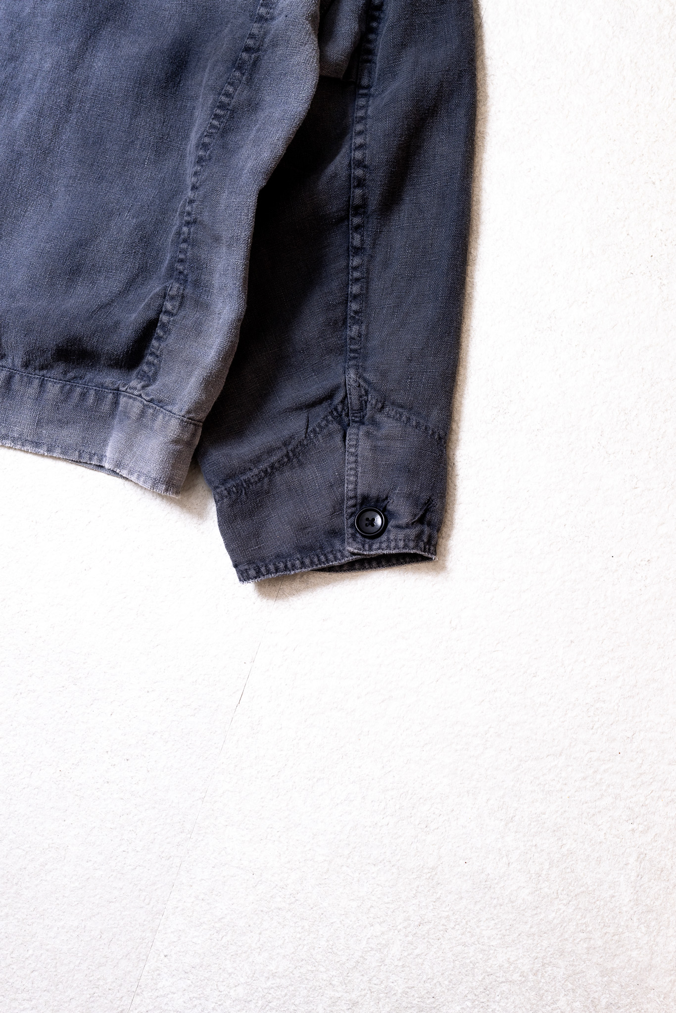 リネン特有の風合いと相まって、ヴィンテージライクな佇まいに仕上げた一着です。